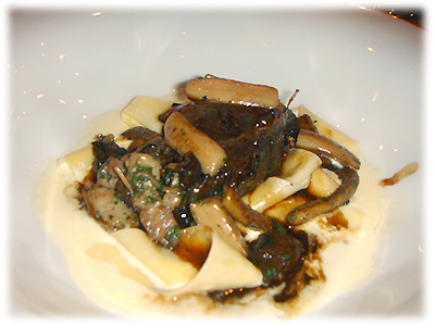 『和牛の赤ワイン煮込み、エリンギ茸と自家製パンチェッタと和えた生パスタ』